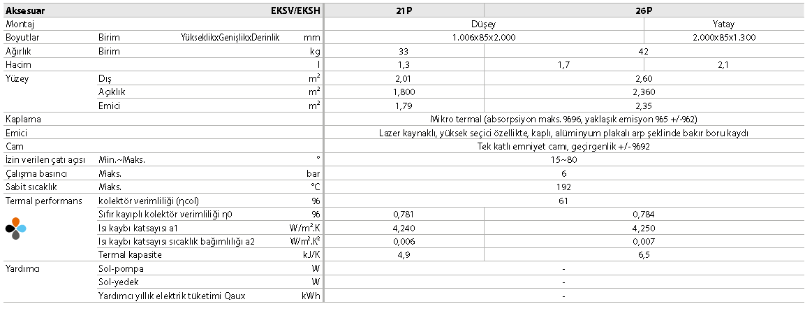 › Kullanım sıcak suyu üretimi için yatay veya düşey güneş enerjisi kolektörleri