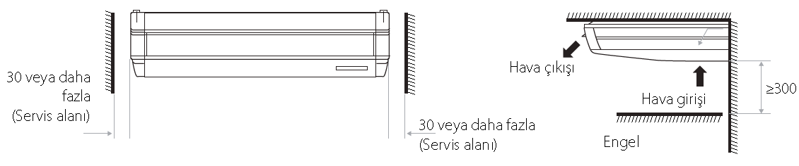 › Yalnızca 30 mm yan servis alanına ihtiyaç duyduğundan köşelere ve dar alanlara kolayca monte edilebilir