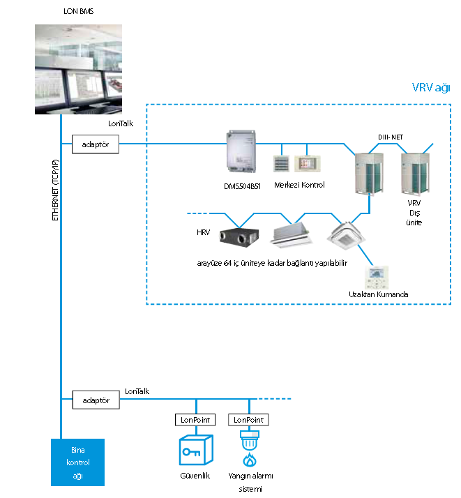VRV takip ve kontrol işlevlerinin LonWorks ağlarına açık ağ entegrasyonu