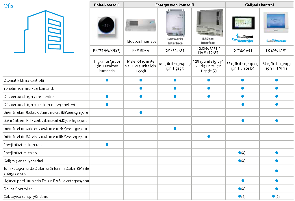 › Daikin üniteleri mevcut BMS sistemiyle entegre etmek isteyenmüşterilere kontrol çözümleri