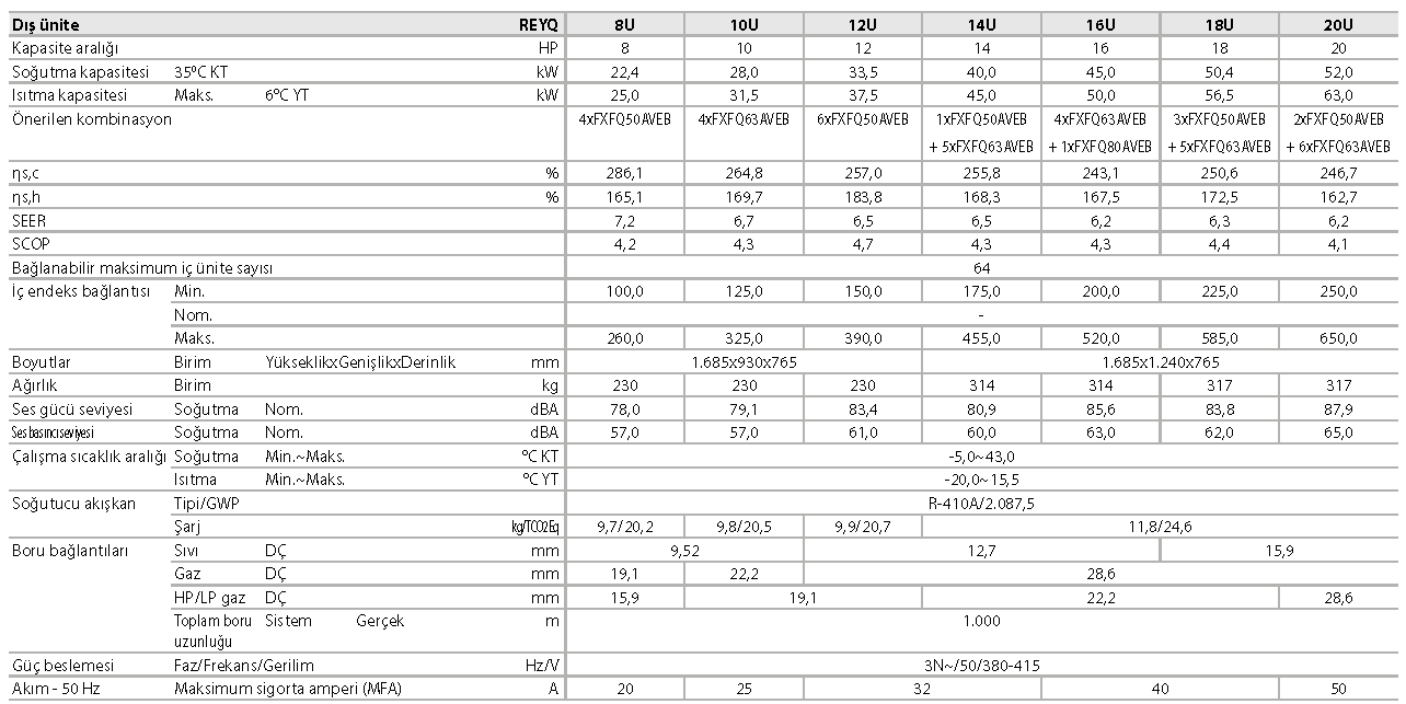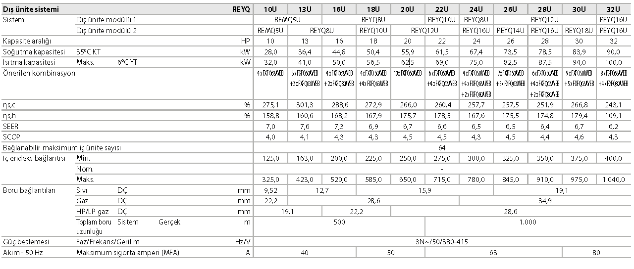 ve tam inverter kompresörler, 4 taraflıdış ünite eşanjörü, soğutucu