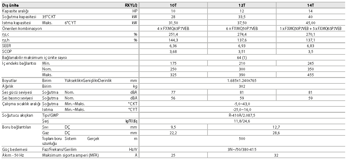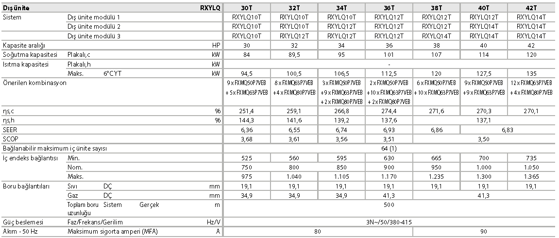 › Geniş boru esnekliği: 30 m iç ünite yükseklik farkı, maksimum eşdeğer boru uzunluğu: 190 m, toplam boru uzunluğu: 500 m