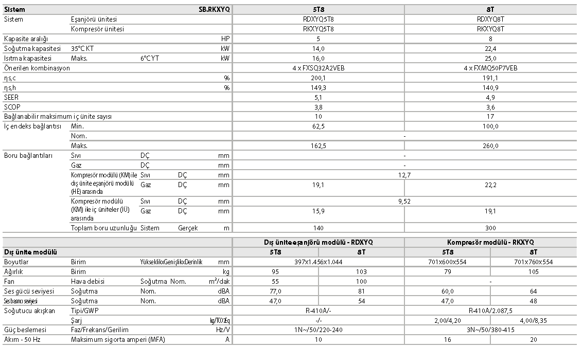 › Tüm standart VRV özelliklerine sahiptir